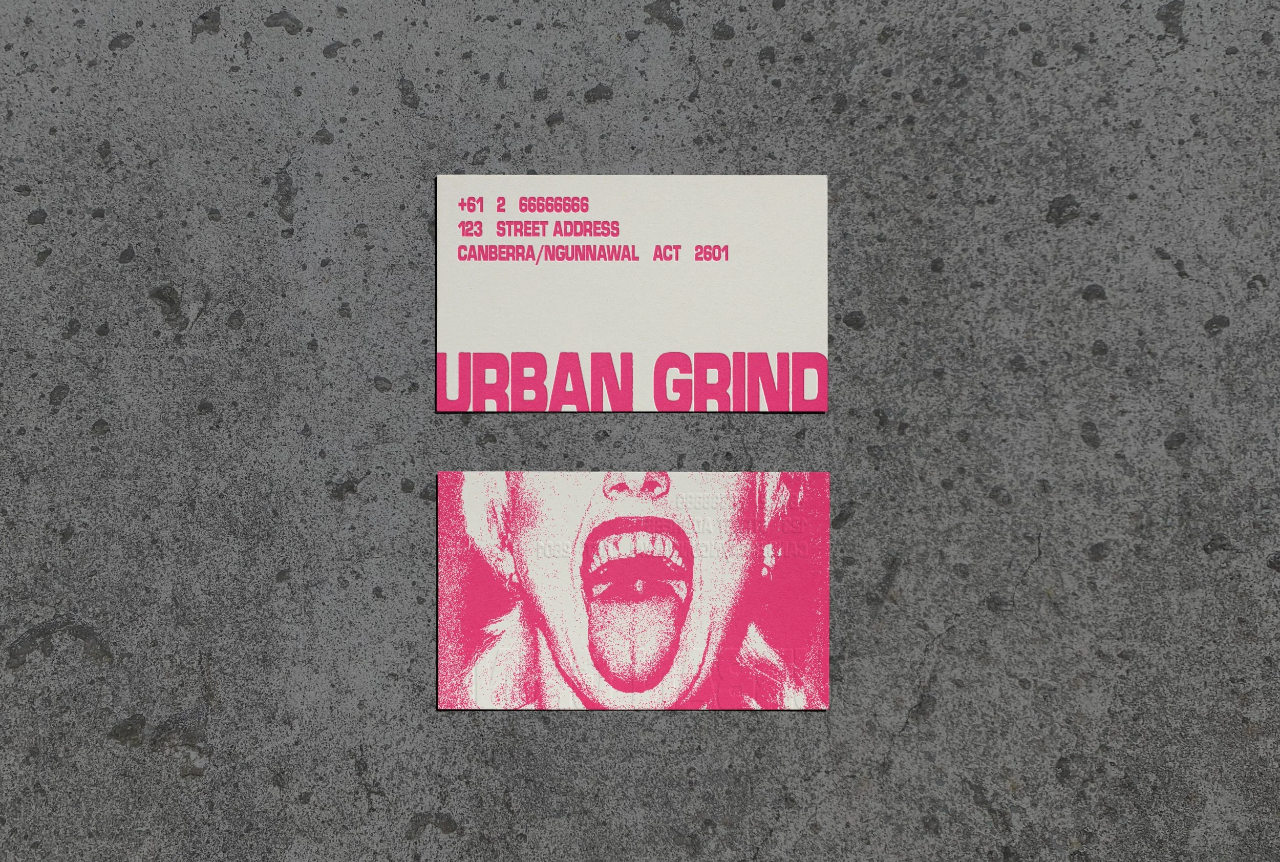 For this project I wanted to not only create a brand identity in a style I’m not overly accustomed to, but I also wanted to create high-quality examples of how that brand could be adapted to various real-world executions. In the case of Urban Grind, I wanted to lean into a grungy, punk-rock style which emphasised a photocopied, DIY aesthetic.